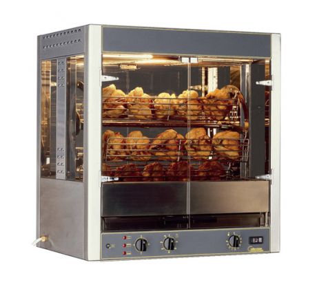 rozmer: 850x700x850mm(šxhxv); príkon elektro: 8,5kW/400V; počet košov: 5ks; počet kurčiat na kôš: 5ks; regulácia výkonu; osvetlenie; teplomer; dvierka v prednej i zadnej časti; príslušenstvo na objednávku:; - mobilný vyhrievaný podstavec RE 2; - sada ihlíc 5ks; - centrálna ihla na jahňa